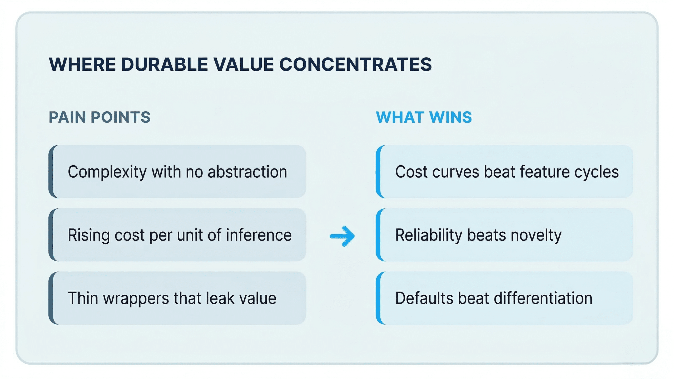 C'est également la raison pour laquelle les meilleures entreprises d'infrastructure sont si difficiles à apprécier rapidement. Leur valeur est invisible dans une démo. Un coût d'inférence plus faible, une utilisation et un temps de fonctionnement plus élevés, une latence prévisible en cas de charge - rien de tout cela ne suscite des applaudissements lors d'une réunion de présentation. Mais ils apparaissent de façon spectaculaire sur le site P&L une fois que vous travaillez à grande échelle.